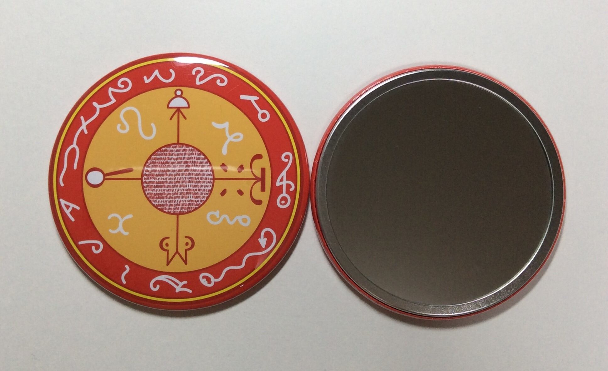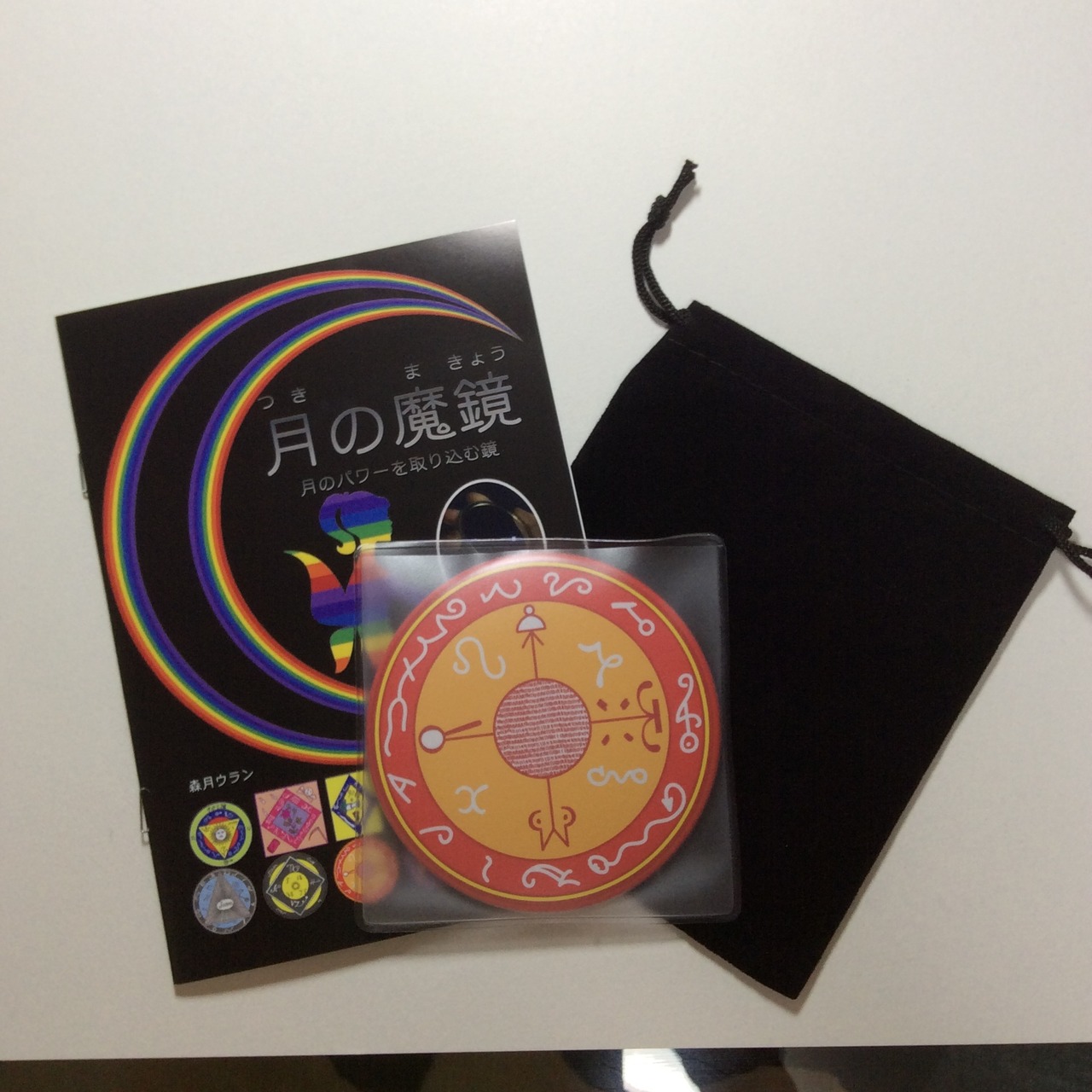 鏡に月を映して願い事を込めるお守りです。約3000年前の「ソロモン王の魔法円」を受け継いだ「黒い雌鶏の魔法円」。魔法円には願い事をかなうように神様と呪文が書かれています。魔法円は儀式で使用する大切なものです。その大切な魔法円をかわいくデザインしました。もちろん呪文はそのままです。魔法円つきの鏡で月の光を取り込みパワーアップさせましょう。月の光は毎月決まった日・時間に行います。魔法タイムといわれる神様が舞い降りる時間帯に願い事を込めます。